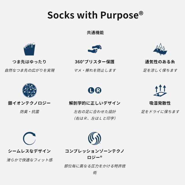 まるで足が動きながら呼吸するような新感覚のソックス。シリーズで最も薄く、クーリング効果を最大化したモデルです。画期的な「SkinThin熱放出ゾーン」とエアサーキュレーションを高めるリフトバーが、空気の流れを増やして湿気を逃がし、足を涼しくドライに保ちます。世界で最も薄いランニングソックスを目指し戦略的にデザインされており、パフォーマンスを犠牲にすることなく通気性を求めるランナー、アスリートに最適です。