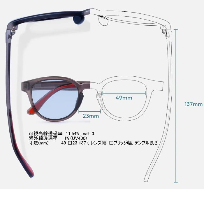 寸法(mm) 49 □23 137 ( レンズ幅, □ブリッジ幅, テンプル長さ)