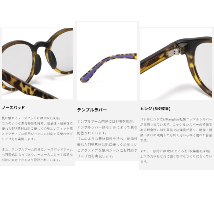 また、テンプルアーム同様にノーズパッドアームも可変式になっており、一人一人にとって最適な形状に変更できるよう設計されています。