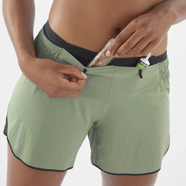 SALOMON サロモン ハーフパンツ ショーツ レディース SENSE AERO 5 SHORT W Laurel Wreath LC2181400 センスエアロ ショーツ アエロ 速乾 軽量 トレイルランニング トレラン マラソン ジョギング アウトドア ハイキング 軽登山 山登り トレッキング