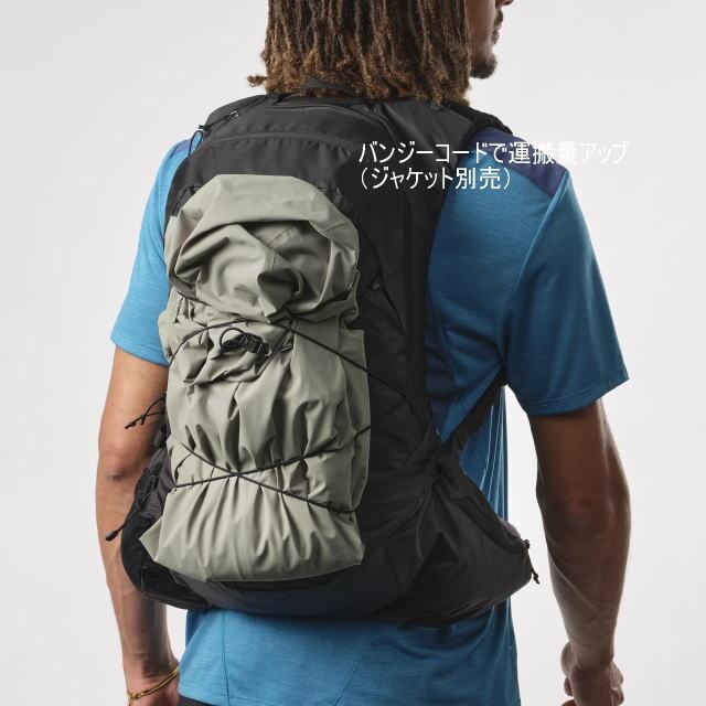 外側にポールやジャケット用のレースなどさまざまな収納オプションを備えた、汎用性抜群の軽量バックパック。