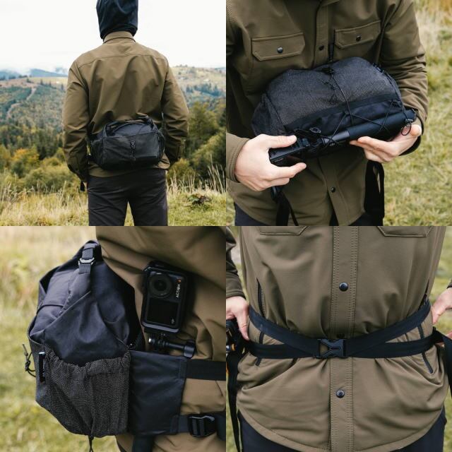 HIP PACKは、MTBやグラベルライドでのバイクパッキングやオートバイでの使用はもちろん、日帰りハイキングや街歩きにも最適な容量10Lのウエストバッグです。