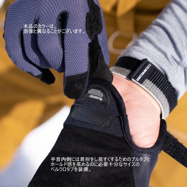 高い耐久性とグリップ力が特徴でクサリ場やハシゴ場でも手のひら感覚を損ねることのない使い心地。肌あたりの良さも大きな特徴のひとつ。