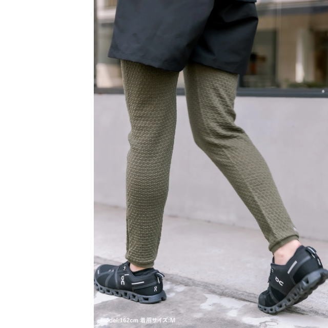 多くの皆様からのリクエストにお答えし、ついにワンダーウェアと同素材のレギンスが誕生しました。無縫製ニットで締め付けが少なく、素肌に優しくフィット。ワンダーウェアと比較すると股上が深めに作られているので、ワンダーウェアや他のアンダーウェアの上に穿くこともできます。ハイキング、登山を想定し、メリノウール70%、再生ポリエステル30%の混紡で保温性を高めました。ウエストは平ベルトでしっかりとホールドし、ずり落ちを防ぐので1枚で穿いても安心です。