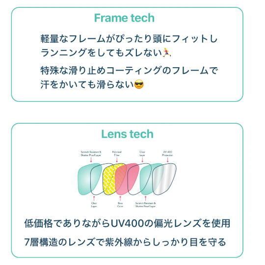 ・低価格でありながらUV400の偏光レンズを使用、5層構造のレンズで紫外線からしっかり目を守る