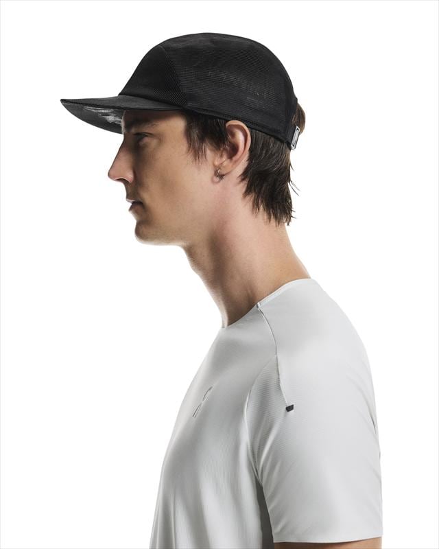スペクターキャップ:パフォーマンス重視のランニングキャップ。レーザーカット加工のメッシュ素材が最大限の通気性をもたらし、吸湿性に優れたスウェットバンドが集中力を支えます。