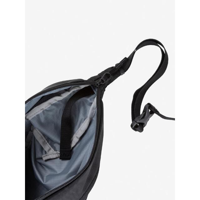 メインファブリックには、リサイクルナイロンを採用して環境に配慮。体に寄り添うデザインと、本体内部に収納できるショルダーベルトのテープエンド仕様は、見た目にもスマートなアイテムです。