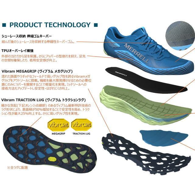 アッパーには、軽量で通気性、耐摩耗性に優れた“Leno Weave (レノ・ウィーブ)”を採用。伸縮性が低く、フィールドにおける激しい動きの際も足室内での足の無駄な遊びを抑えます。さらにアッパーサイドやシューレースホールまわりに配置されているTPUオーバーレイ補強も、設計やその面積を見直し、外的要因から足を保護するため耐久性を強化。ミッドソールには、相反する軽量性と耐久性(機能持続性)を合わせ持ち、反発弾性・クッション性に優れたサステナブルEVAフォーム“FLOATPRO?(フロートプロ)”を採用。また、ミッドソール内側上部に縦横のアシストラインを入れた“FLEXCONNECT?(フレックスコネクト)”構造により、路面の凹凸に応じてしなやかにソールを屈曲させ、スムーズな足の動きを助けます。併せて、ミッドソール足底部のフォアフット側1/2に、ESSロックプレートを張り合わせ、着地時における地面からの突き上げに対応し、さらに足裏の“面安定感”に寄与します。アウトソールには、世界有数のイタリアのソールメーカー「Vibram (ヴィブラム)」屈指のハイパフォーマンスグリップ“Vibram MEGAGRIP (ヴィブラム メガグリップ)”と、トラクション性・安定性を高めるVibram最新特許技術のラグ形状“Vibram TRACTION LUG (ヴィブラム トラクションラグ)”を全ラグに搭載し、さらにこだわりのラグパターン設計とラグ深5mmにより厳しいフィールドコンディションでも最高レベルのグリップ力を発揮します。この1足でショートからロングディスタンス、またはテクニカルな山岳地帯までオールインワンで活躍します。