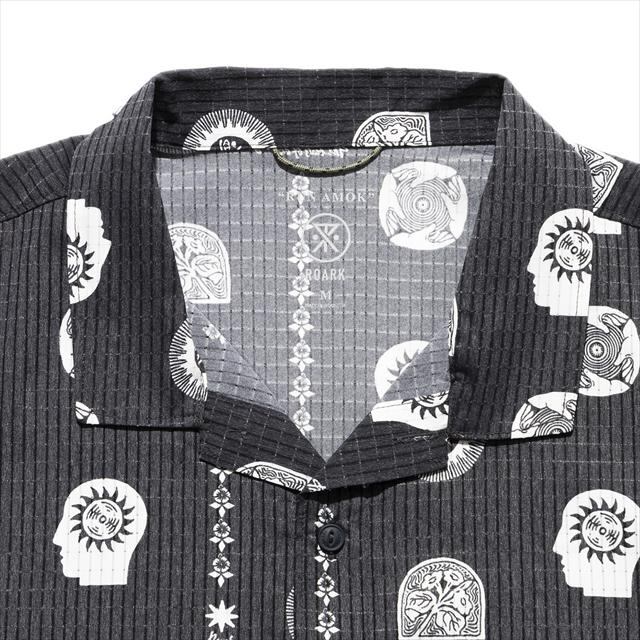 Run Amok ラン・アモック BLESS UP TRAIL RW600-BKP Black Print メンズ ブレス アップ トレイル ロアークリバイバル ROARK Revival 半袖開襟シャツ トレイル ランニング トレイルランニング トレラン マラソン ジョギング アウトドア 吸湿速乾 ストレッチ