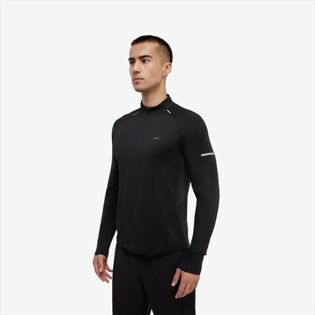 KIPRUN(キプラン) ランニング 長袖Tシャツ 1/2 ZIP LS DRY 500 8902771 メンズ BLACK 1/2ジップ ハーフジップ ハーフファスナー LS ドライ 500 軽量 レース マラソン トレラン トレイルランニング ロングスリーブ 透湿性 吸湿速乾性 通気性