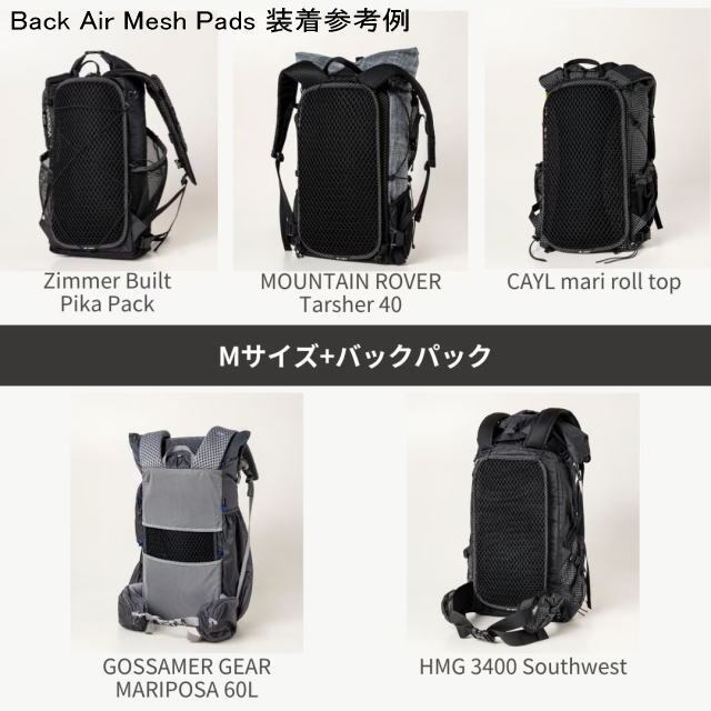 ■バックエアメッシュパッドは、背面メッシュを持たないULバックパックに装着する事で、高い通気性とクッション性を確保してくれます。
