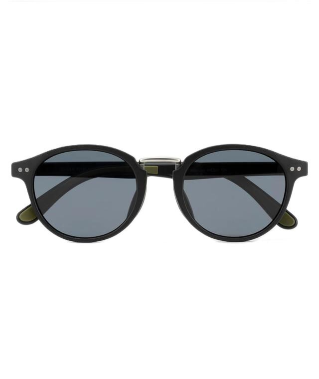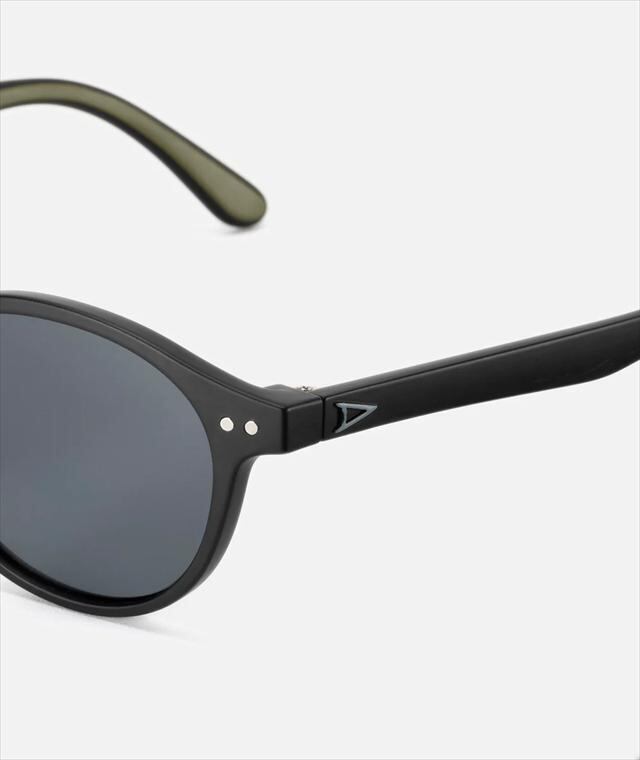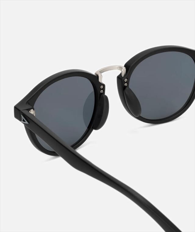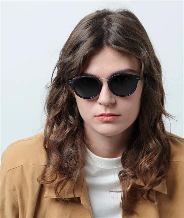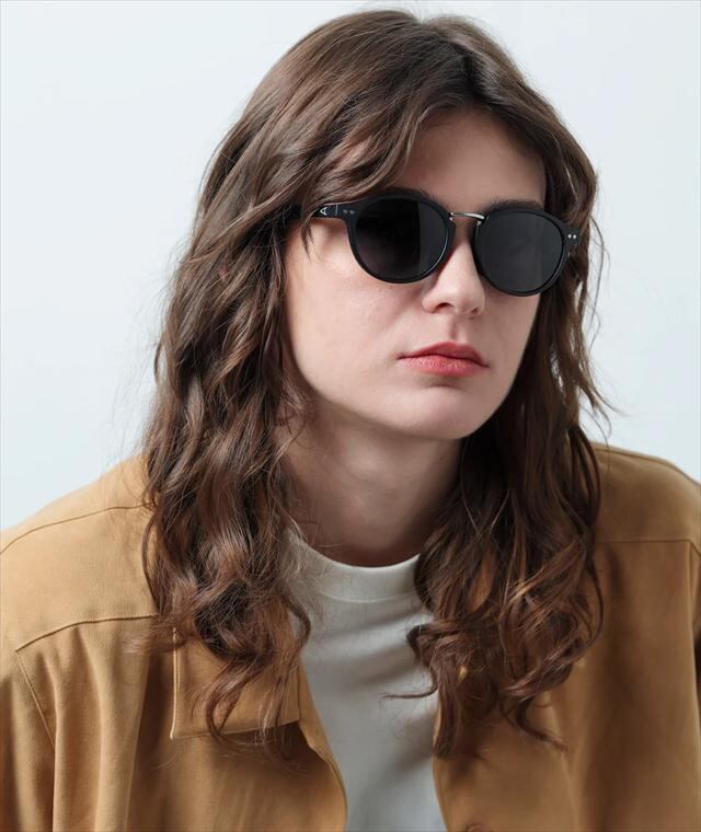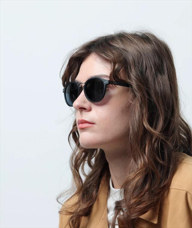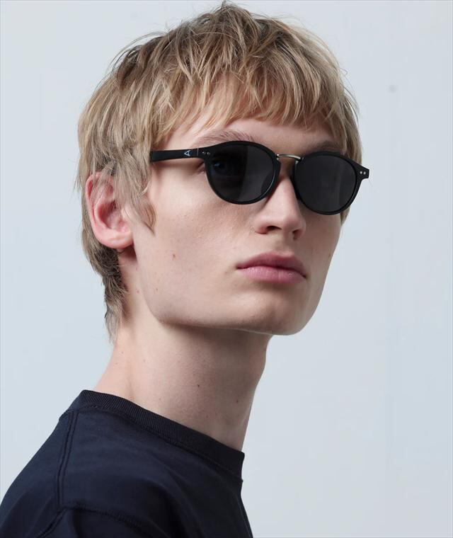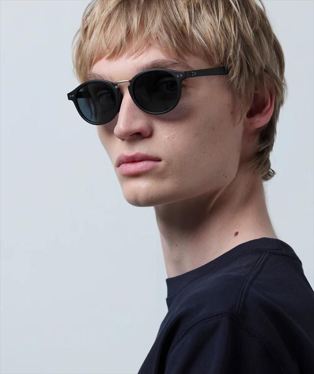天地幅を抑えたボストンタイプのレンズシェイプにメタルブリッジを組み合わせて、新開発の細身のナローテンプルを採用。フレーム全体をスリムに仕上げる事で見た目、着用感共に軽快さを感じさせつつ、メタルのカシメ(ドット鋲)でクラシックさも演出しています。フレームはマットブラック、レンズは反射光をカットし視界をクリアに見やすくする偏光レンズ。