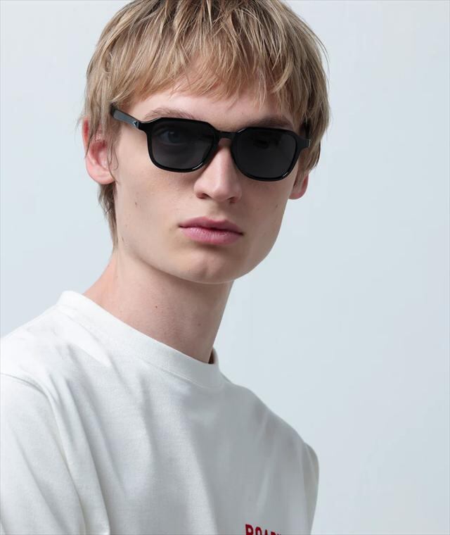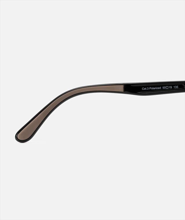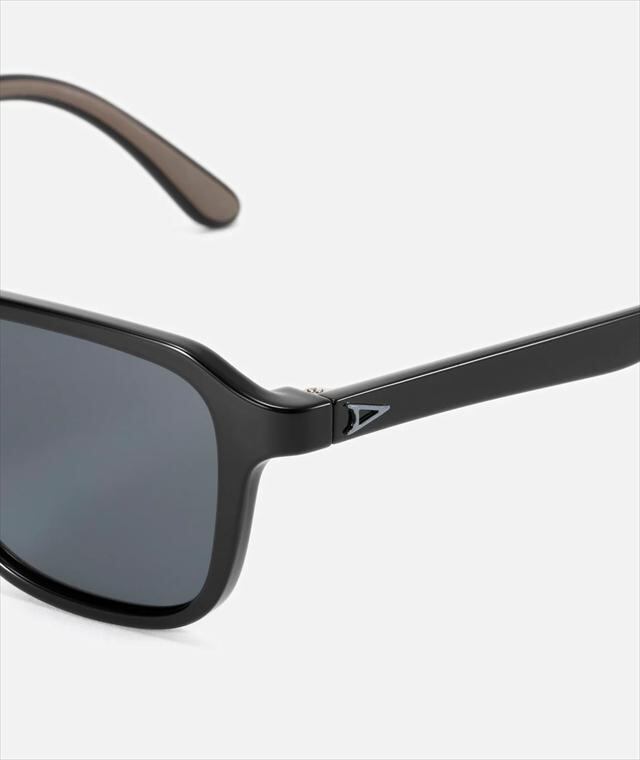 ビンテージをモチーフにしたスクエアフレームが個性を感じさせつつ、あくまでもさりげなく自然な顔馴染みになるようバランスを整えています。テンプルも新開発のナロータイプを組み合わせる事で全体としてスッキリとした印象にまとめられており、程よいアクセントを生み出しています。フレームはマットブラック、レンズは反射光をカットし視界をクリアに見やすくする偏光レンズ。