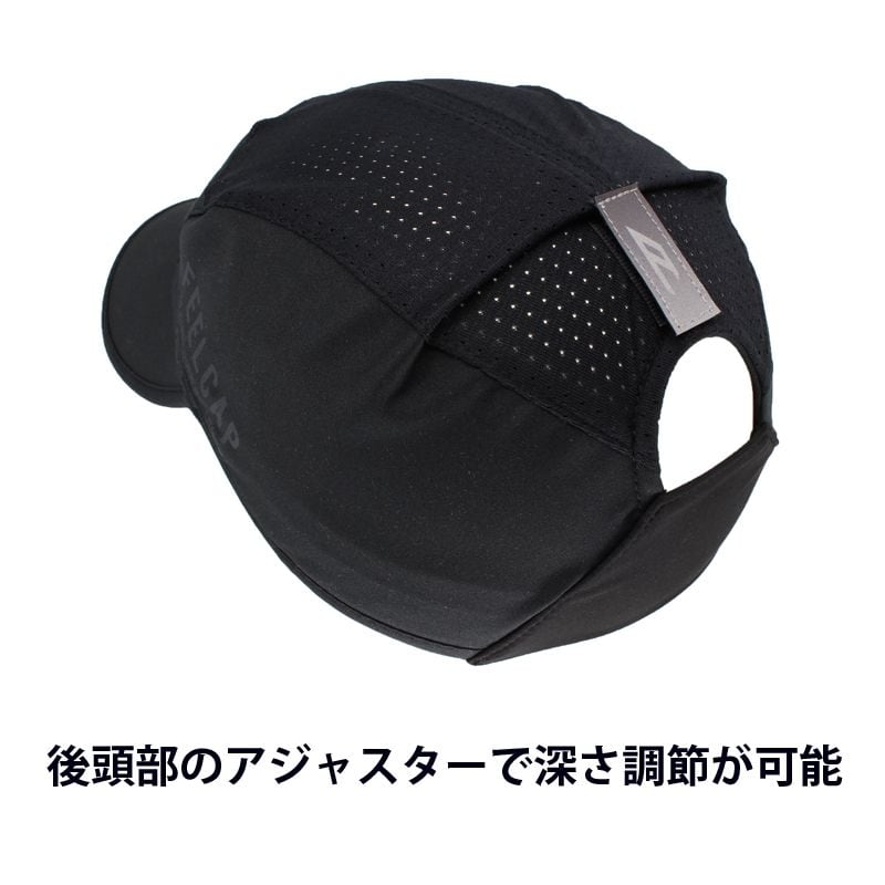 より円形に近いフォルムを生み出す多面体構造とフィット性を向上させる伸縮性の異なる素材を効果的に使用。また、着用時に頭の形と顔のバランスが美しく見えるように計算された独自のカッティング。従来のサイズアジャスターに変わるストレッチバックパネルや、頭の深さ、髪の毛の量、サングラスの有無によって自分好みの深さを自在に調整し、カスタマイズできる独自構造など、FEELCAPは今までにない機能性で全く新しい被り心地を生み出します。