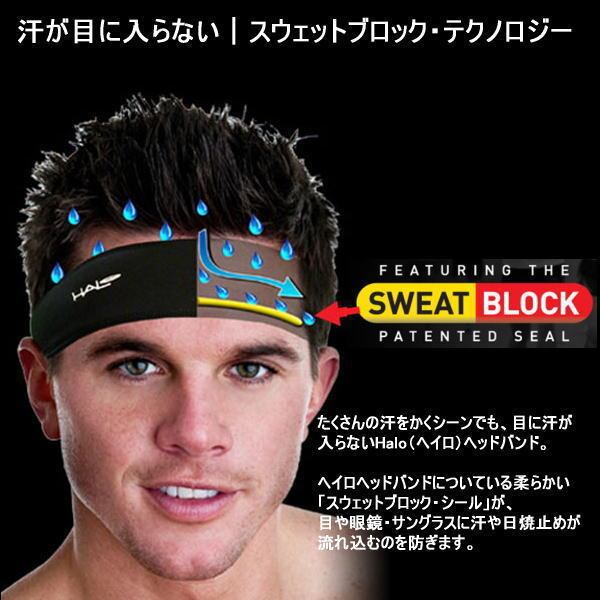 トレーニングやエクササイズ、競技やレース、あるいは労働作業など… たくさんの汗をかくシーンでも、目に汗が入らないHalo(ヘイロ)ヘッドバンド。 ヘイロヘッドバンドについている柔らかい「スウェットブロック・シール」が、 目や眼鏡・サングラスに汗や日焼止めが流れ込むのを防ぎます。