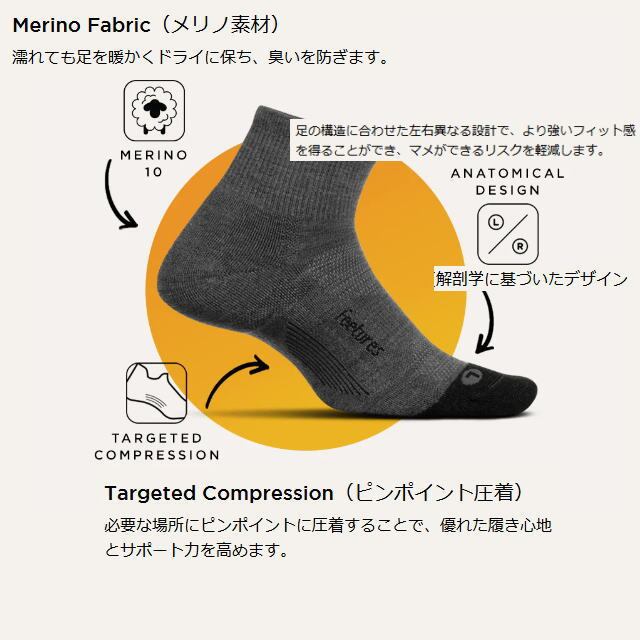 Feetures フィーチャーズ ランニングソックス Merino 10 Max Cushion Mini Crew